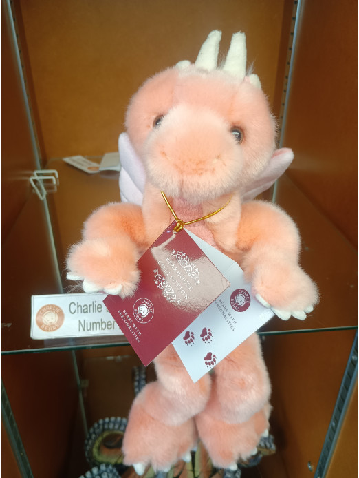 Hearts is an enchanting dragon from the 2025 Bearhouse collection by Charlie Bears. Part of a whimsical dragon family inspired by playing cards, this non-jointed and machine washable companion is made from soft plush in gentle pink hues. With delicate fur accents and adorable wings, Hearts is hard to resist. Hearts has cream claws, whimsical horns, distinctive spine detailing, a plump, cuddly body and sweet facial features that bring character to this magical creature. Suitable for ages 18 months+