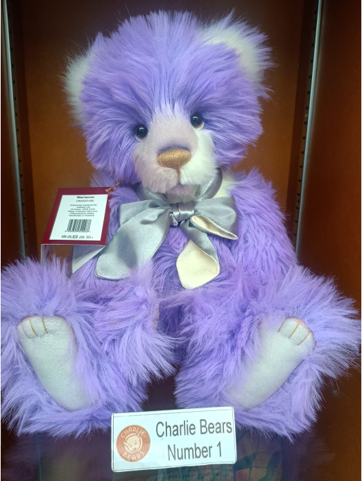 Marianne is a true standout in any hug. With luxuriously soft, vibrant plush purple fur and lovingly handcrafted details, she’s designed to be adored. Her expressive “Who, Me?” eyes are full of curiosity and mischief, giving her a personality that’s impossible to resist. Finished with a graceful grey satin bow tied neatly around her neck, Marianne is charm, comfort, and character wrapped into one unforgettable bear. Suitable for ages 3 years+. Bear height: 43cm/17"/14.3 Bear Paws.